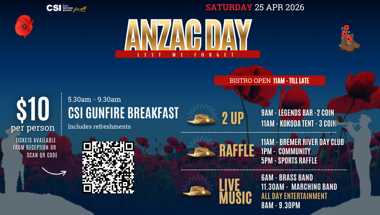 Join us at Club Services Ipswich this ANZAC Day for our traditional $10 Gunfire Breakfast, followed by a full day of commemorative activities, entertainment, and community events.