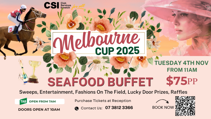 Club Services Ipswich 5a Lowry Street, NORTH IPSWICH, Queensland🎉 Club Services Ipswich Melbourne Cup Seafood Buffet 2025 Club Services Ipswich – Tuesday, 4th November Celebrate the race that stops the nation in style at Club Services Ipswich with our spectacular Melbourne Cup Seafood Buffet! 🕒 Doors open: 10:00 AM 🍽️ Buffet begins: 11:00 AM 🎰 TAB open from: 7:00 AM 💰 Tickets: $75 […]