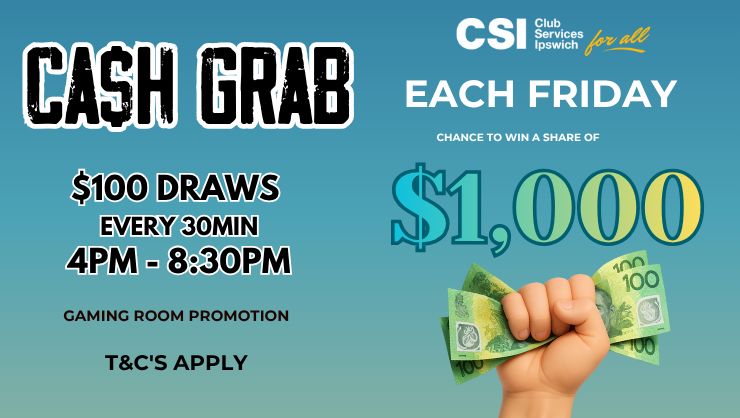Club Services Ipswich 5a Lowry Street, NORTH IPSWICH, Queensland🎉 Friday Cash Grab at Club Services Ipswich 🎉 Every Friday in the VIP Gaming Room Get ready for a thrilling Friday afternoon with our Friday Cash Grab! Members have the chance to win a share in $1,000 every week! 🕐 $100 Cash Draws every 30 minutes 📅 From 4pm to 8:30pm 📍 VIP Gaming [...]